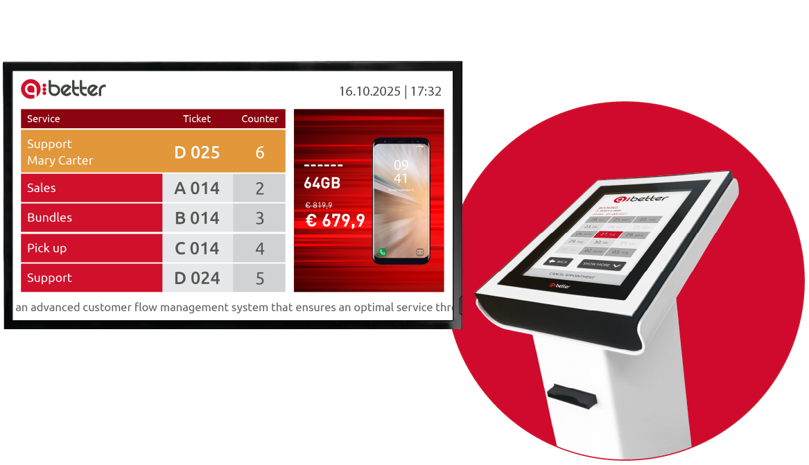 Bloom Appointments is integrated with the queueing module to conciliate both unexpected and expected customers.