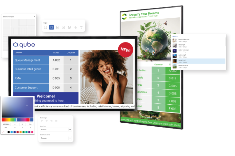 PLAYER & WEB DISPLAY – Real-time queue info + promotions